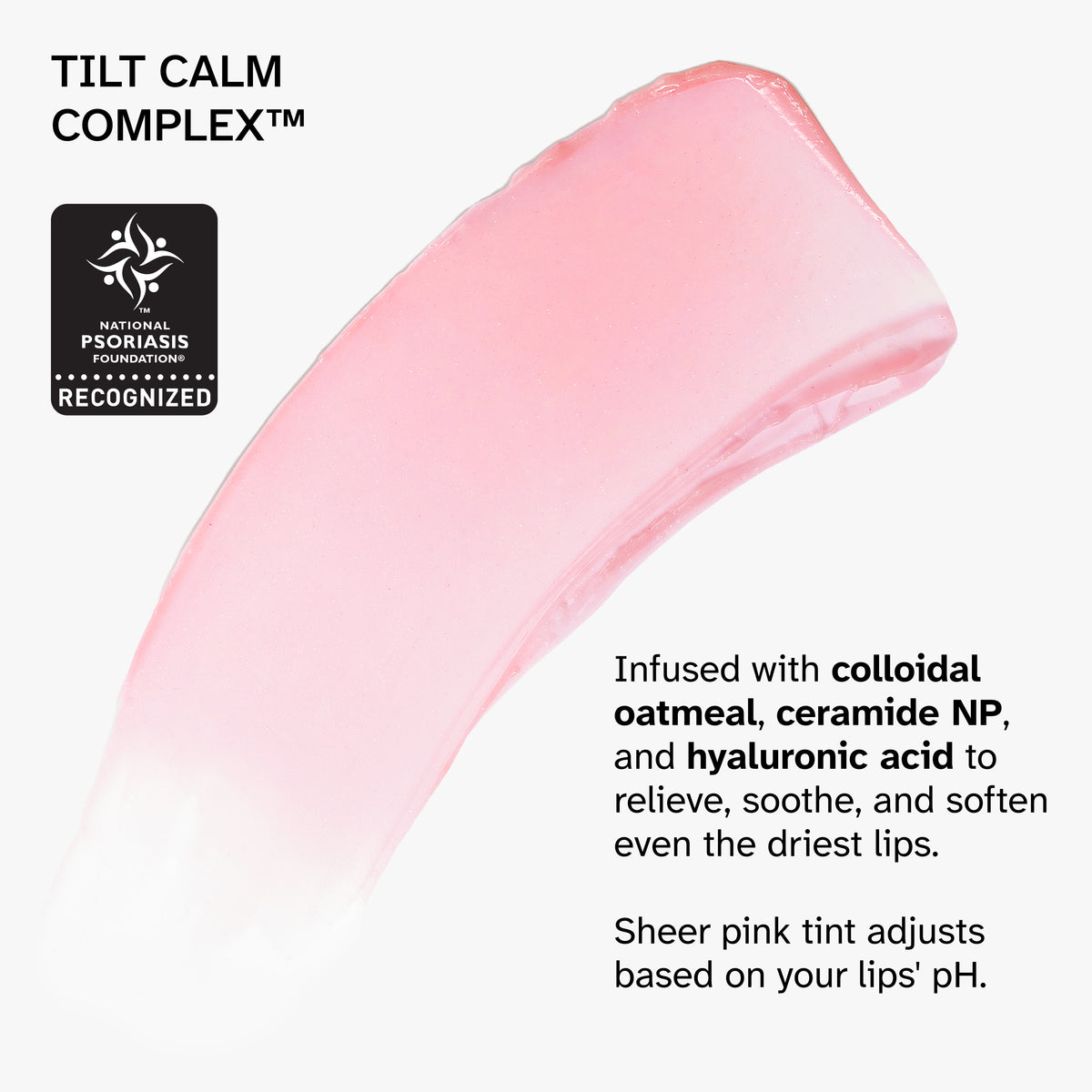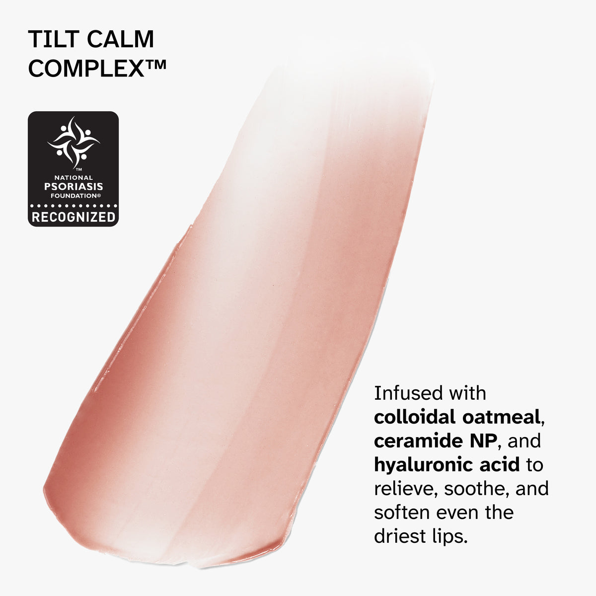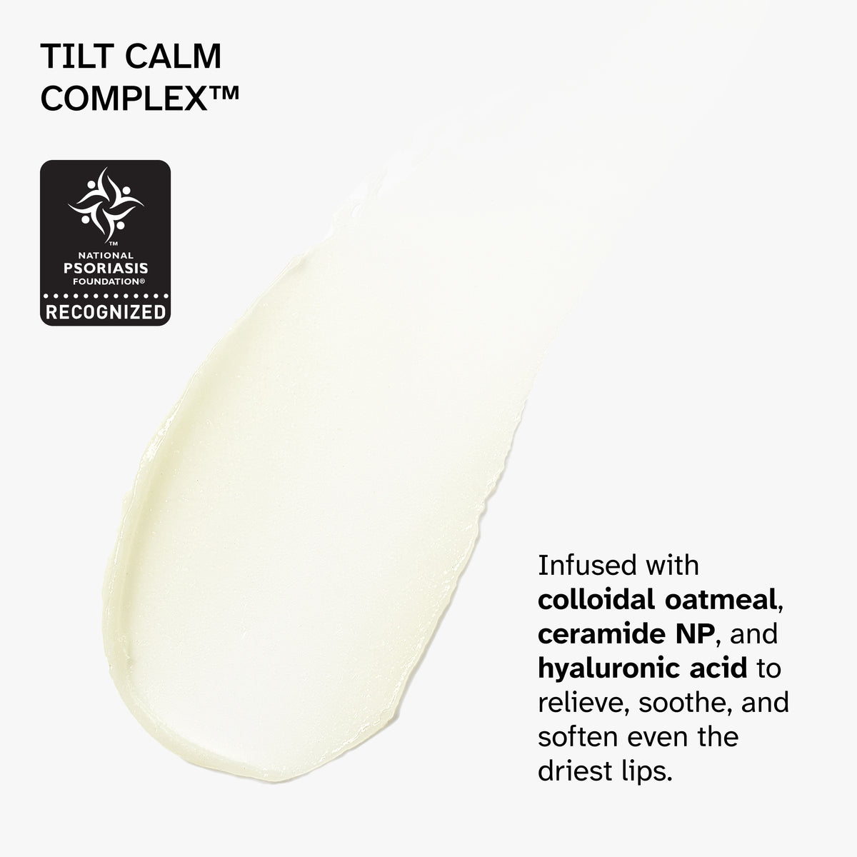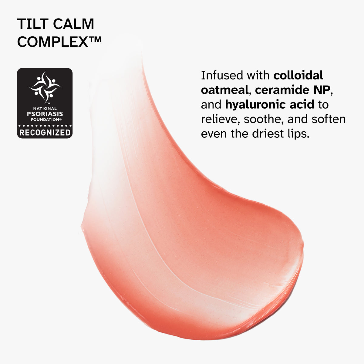 Infused with our proprietary Tilt Calm Complex™ to hydrate, nourish, and keep lips comfortable all day.