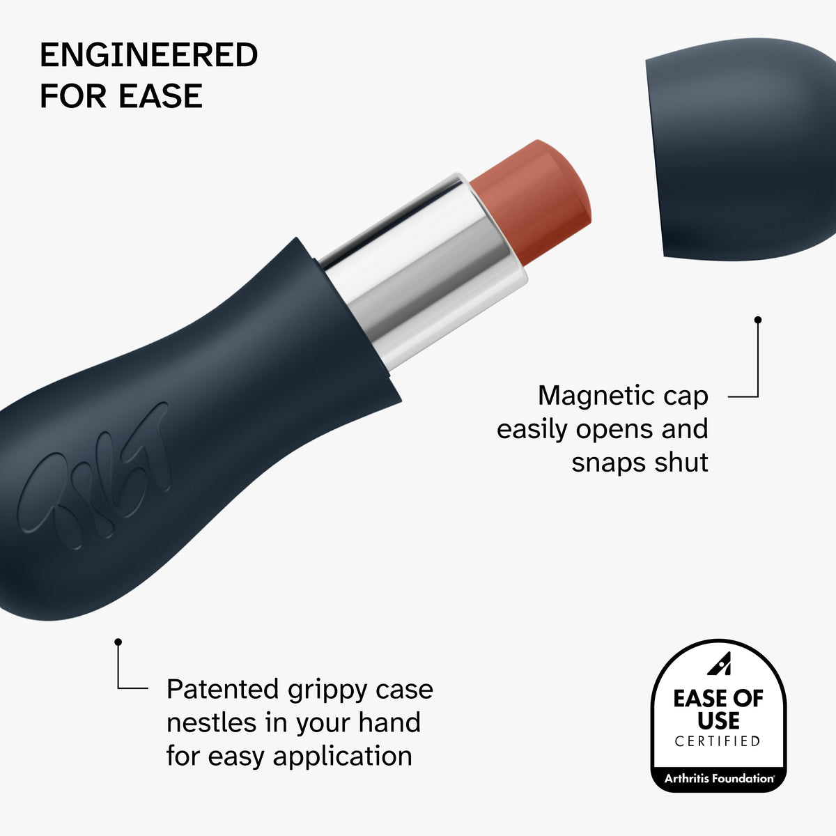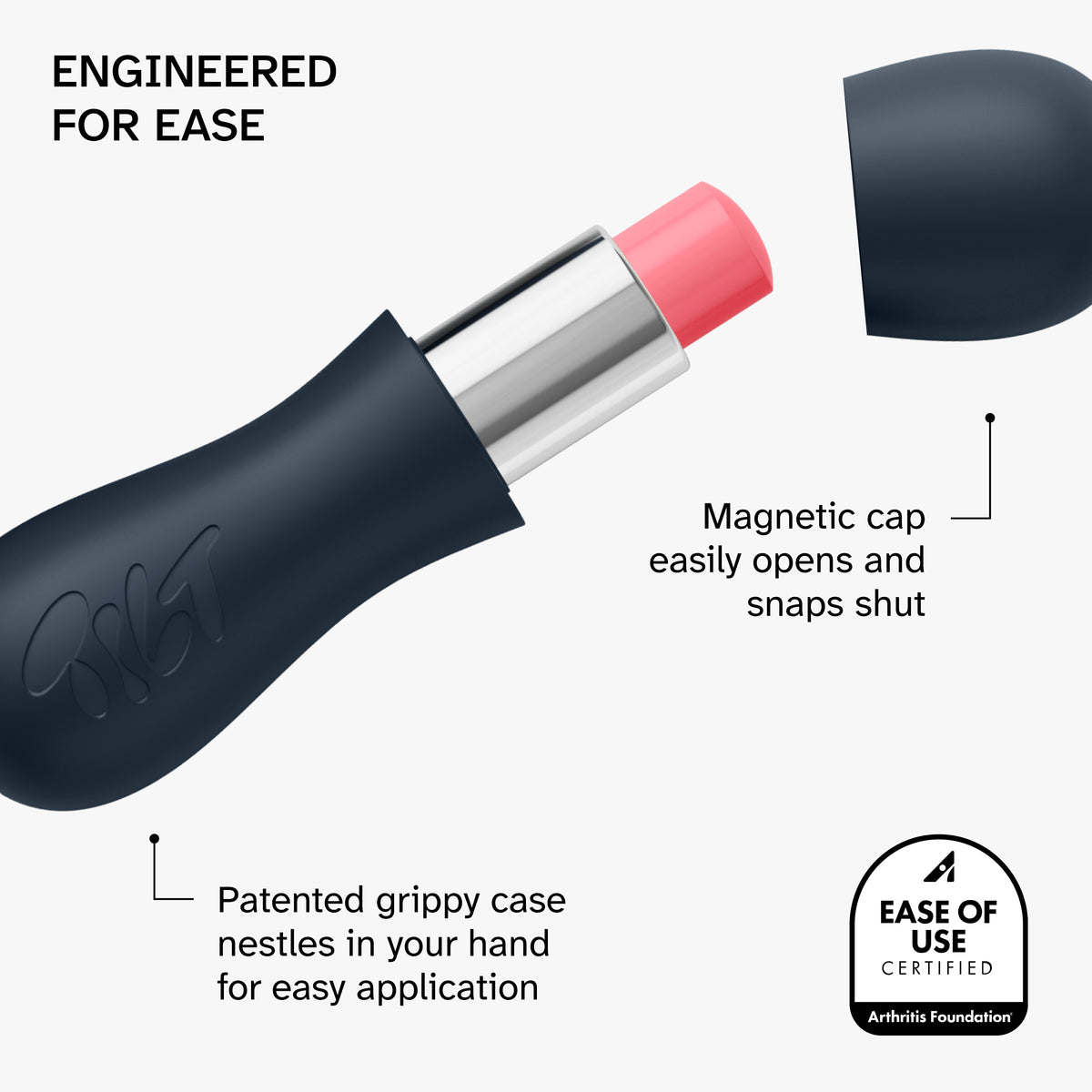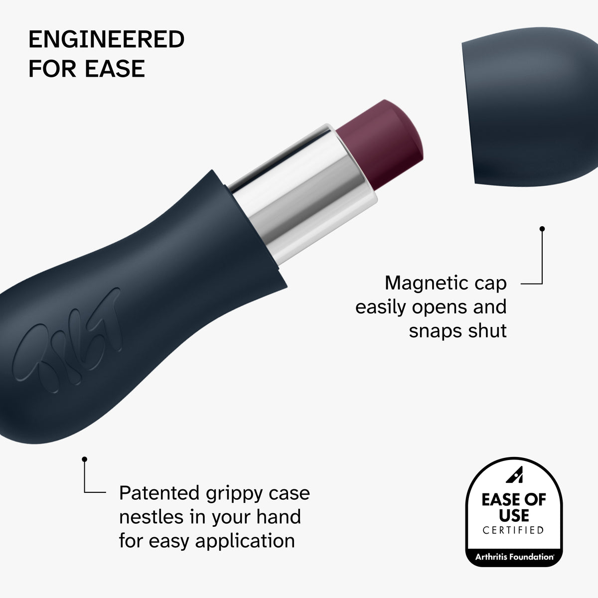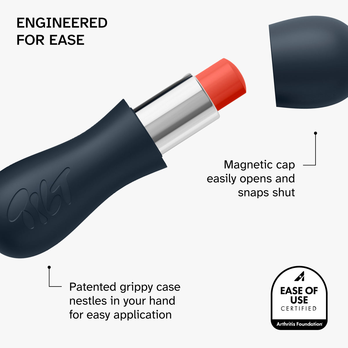 • The first lip treatment to receive the Arthritis Foundation’s Ease of Use® certification, making it easy for everyone to use, including those with arthritis and chronic pain.