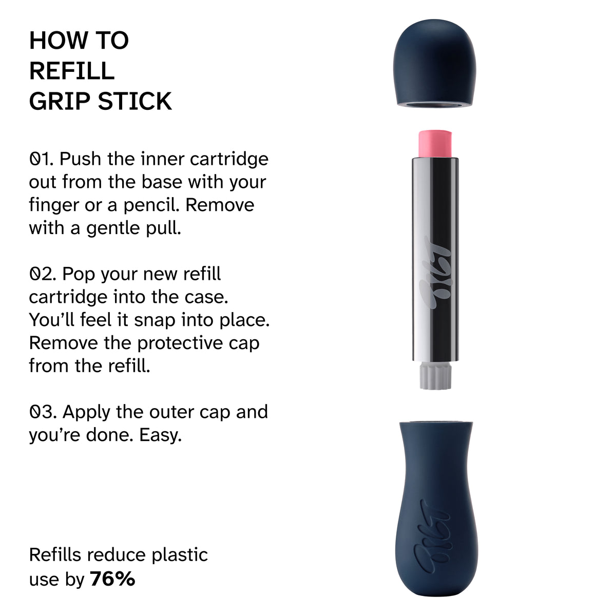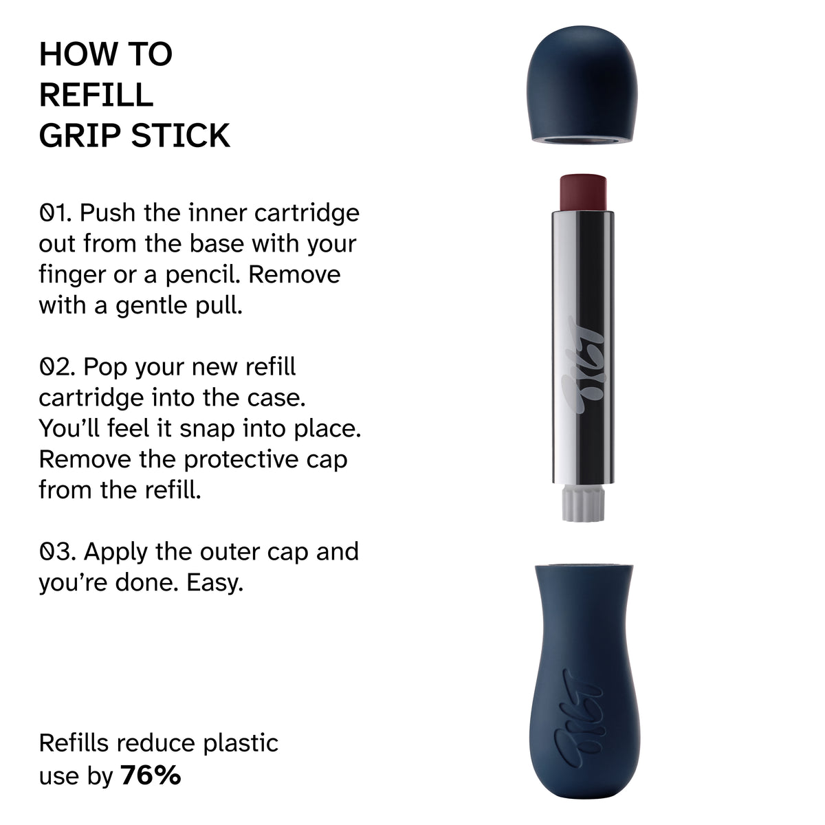 • Refillable, grippy case with a magnetic closure designed for comfy, full-control application.