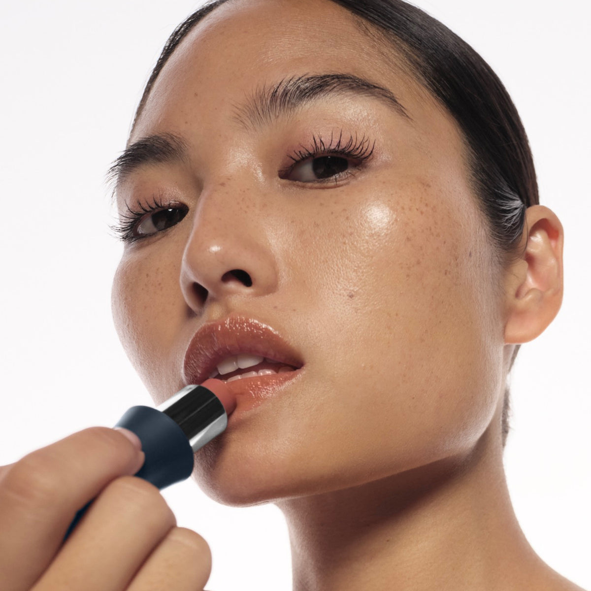 An instant hit of hydration and sheer, comfy color, or bare-but-better clear, in an ergonomic, refillable case for easy, full-control application. No fragrance, no flavor, just silky, lasting moisture that cocoons lips, visibly smoothing and plumping them with a demi-shine finish.